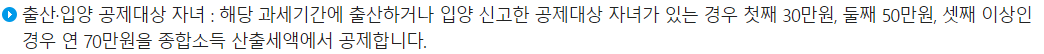 - 종합소득 산출세액에서 교육비를 공제하여 세액을 감소시킵니다.