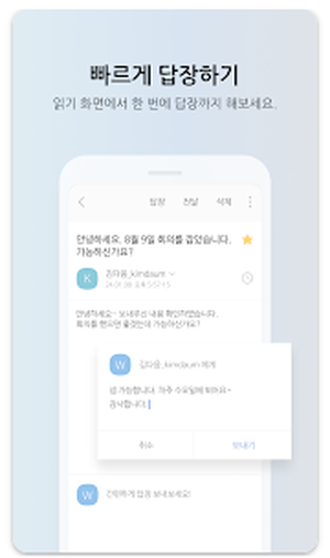 - 스와이프 동작 지원: 메일 삭제 및 보관 기능을 손쉽게 조작 가능