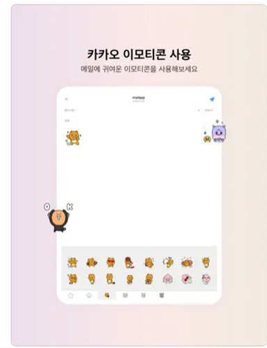 - 카카오프렌즈 이모티콘 활용: 메일 작성 시 감정 표현을 위한 이모티콘 제공