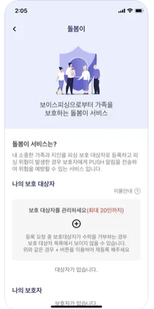 - 앱 실행 후 보호 대상자를 등록해 기능을 활성화합니다.