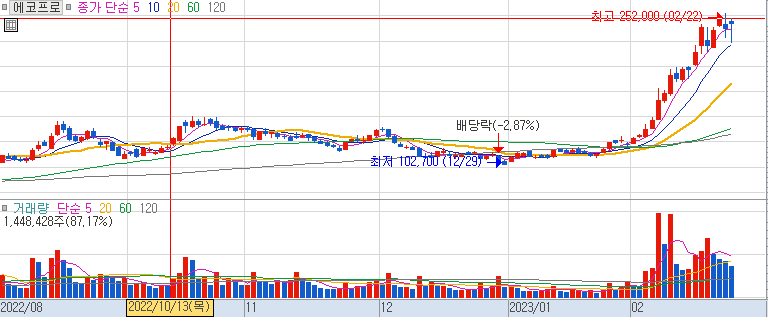 수산화리튬 관련주 에코프로 주가