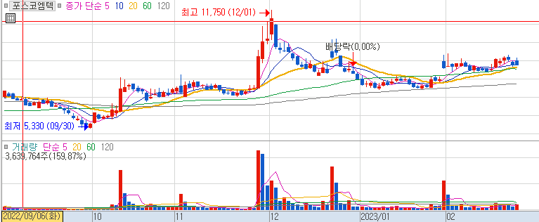 수산화리튬 관련주 포스코엠텍 주가