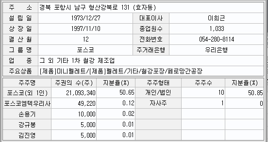 수산화리튬 관련주 포스코엠텍 재무재표